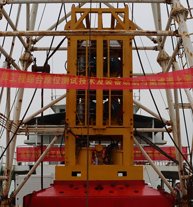 自主研發(fā)的20噸液壓輪驅(qū)動海床式CPTU設(shè)備 -