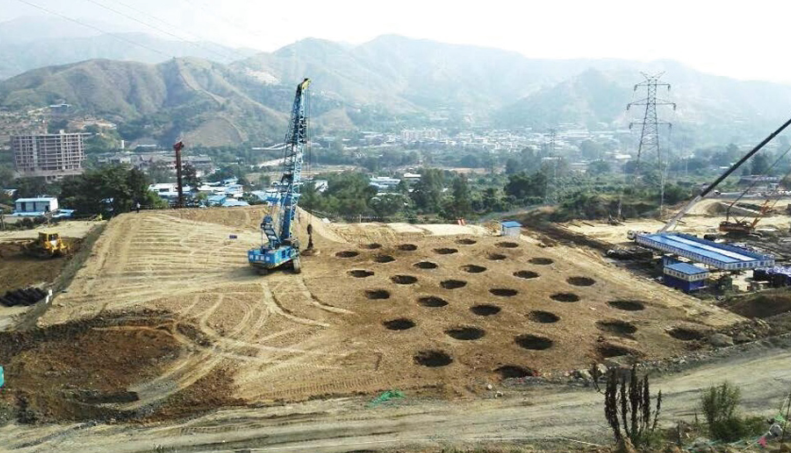 項目綜合交通樞紐建筑面積約4.4萬平方米,場地平整及地基處理面積約為15.6萬平方米,采用土質改良及強夯處理,有效解決了昔格達土回填料遇水軟化、承載能力低的問題;場地邊坡支護總長度約1589米,采用單(雙)排樁或衡重式擋土墻支護,邊坡最高達16米。