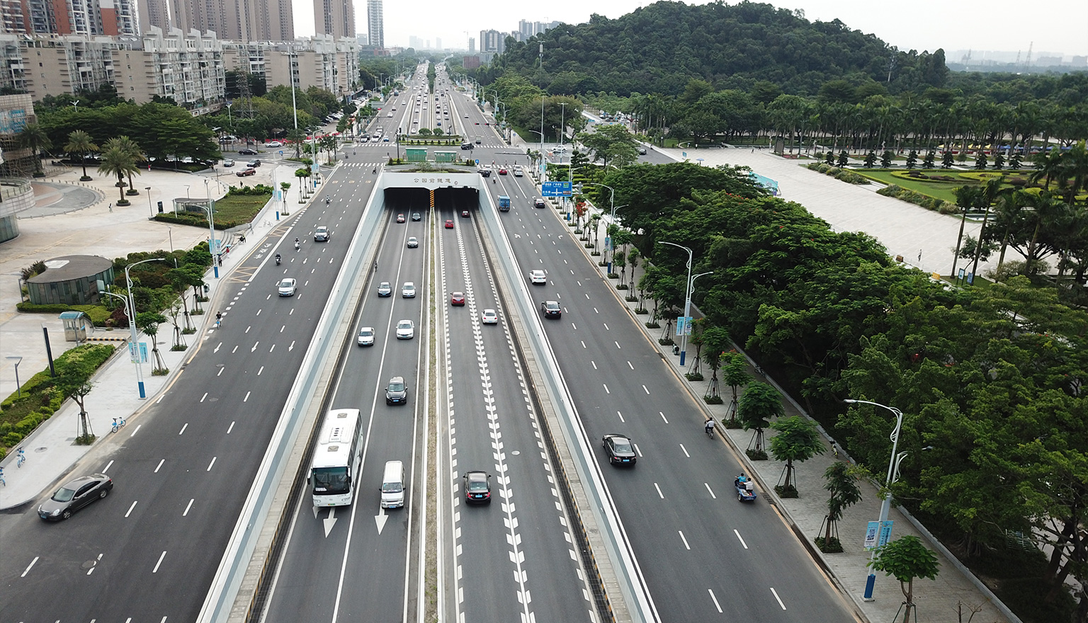 道路全長4.8千米,采用城市主干道設(shè)計(jì)標(biāo)準(zhǔn),包含4座跨線橋、2座隧道、6座輔道橋。