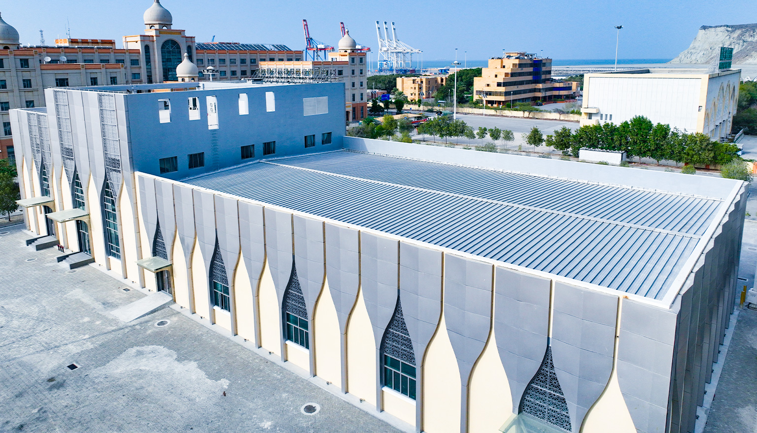項目位于巴基斯坦瓜達爾自由區起步區內部,工程占地面積約2000平方米,建筑面積約3919平方米,建筑功能包括展廳、商業、會議、文體、辦公室、宿舍等。