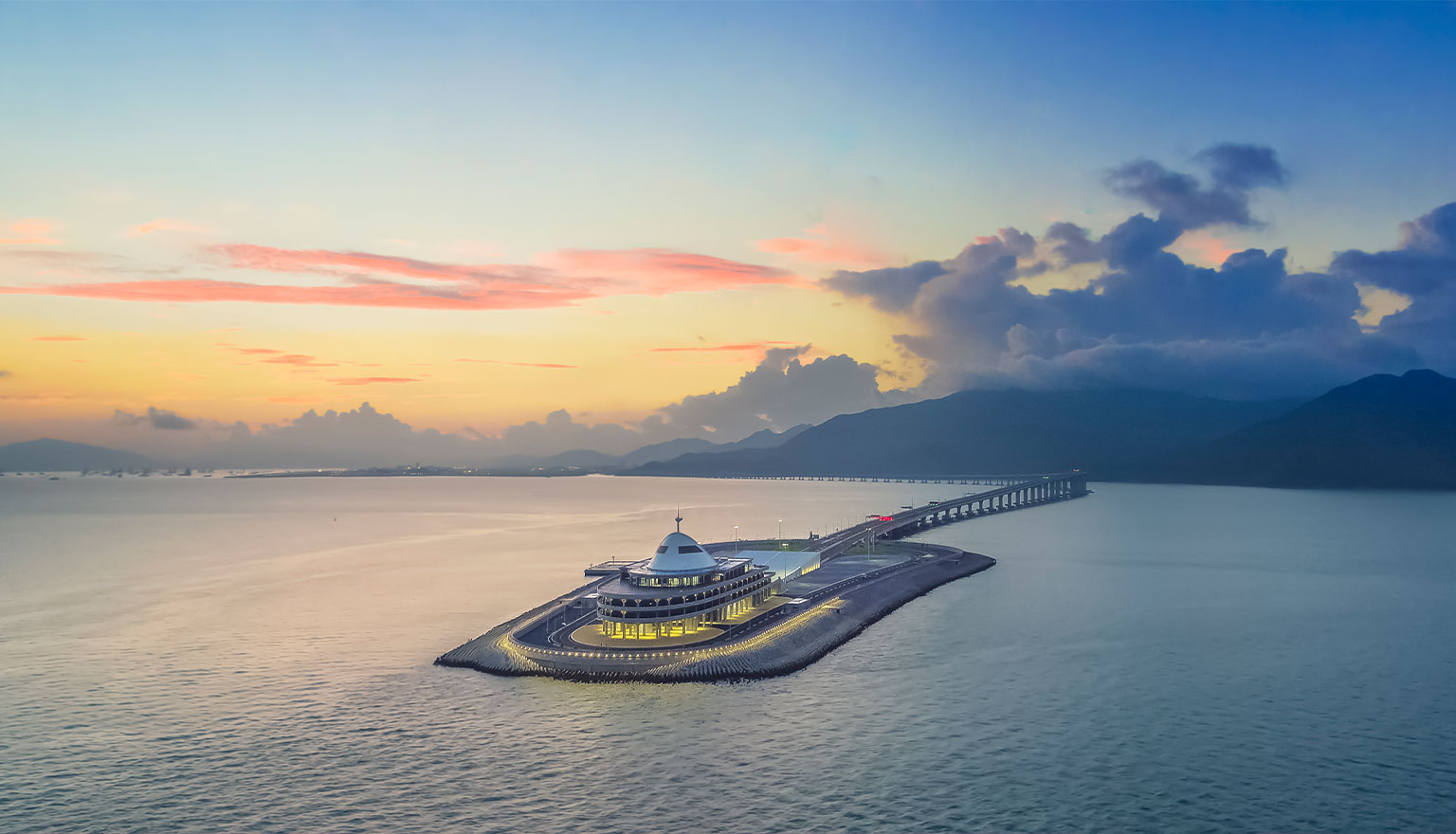 位于珠江口伶仃洋海域,是集橋、島、隧為一體的大型跨海通道。沉管隧道長6.7公里,東、西人工島及島上建筑是橋隧轉換和跨海通道運維的重要基礎設施,東西人工島島長625米,每島面積約10萬平方米;兩島上特高級重要公共建筑約10萬平方米。工廠法沉管預制廠一座,深淺塢最大蓄水面積約為13萬平方米,廠房面積2.7萬平方米。珠澳口岸人工島新建人工島面積約210萬平方米,護岸總長約6100米。
